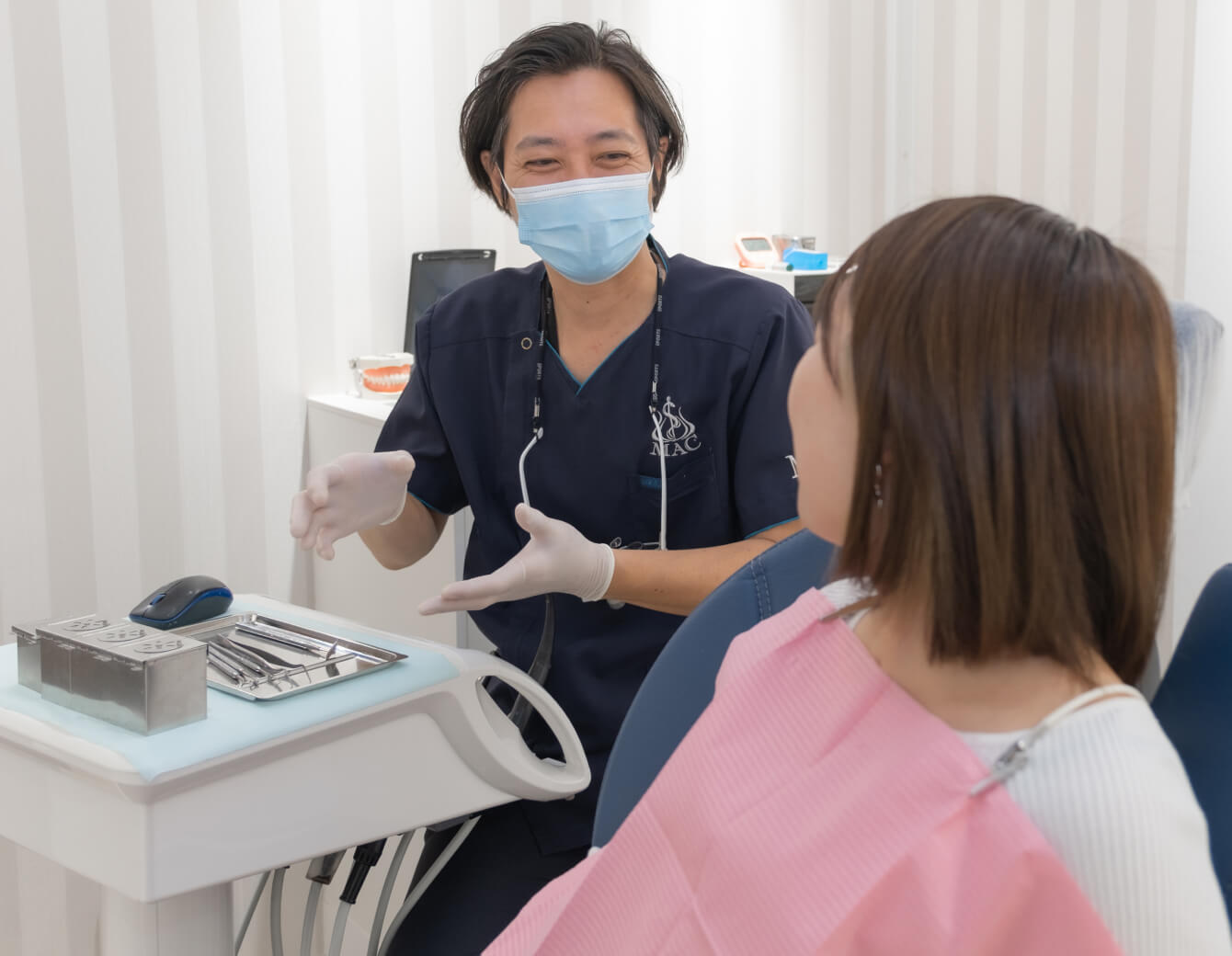 口の中に痛みや違和感があると、とても不安ですよね。 でも、説明があまり無い状態で治療が進んでしまうのは 安心どころか不安を増やす事に繋がりかねません。 中には納得がいかず病院を変えてしまう方もいらっしゃいます。 そんな不安を和らげてあげるのも私達の役目。 診察は丁寧に寄り沿って耳を傾け、 治療に入る前には、患者さまにご納得いただけるまで丁寧に説明する。 こうした心掛けで、患者さまも安心して治療に臨めますし こちらもスムーズに治療を行えます。 また、セカンドオピニオンや普段の生活での予防相談なども行い 患者さまに優しく寄り沿っていきます。