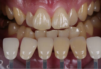 施術前後でどれだけ白くなったか違いが確認できるよう施術前の歯のお色をチェックします。