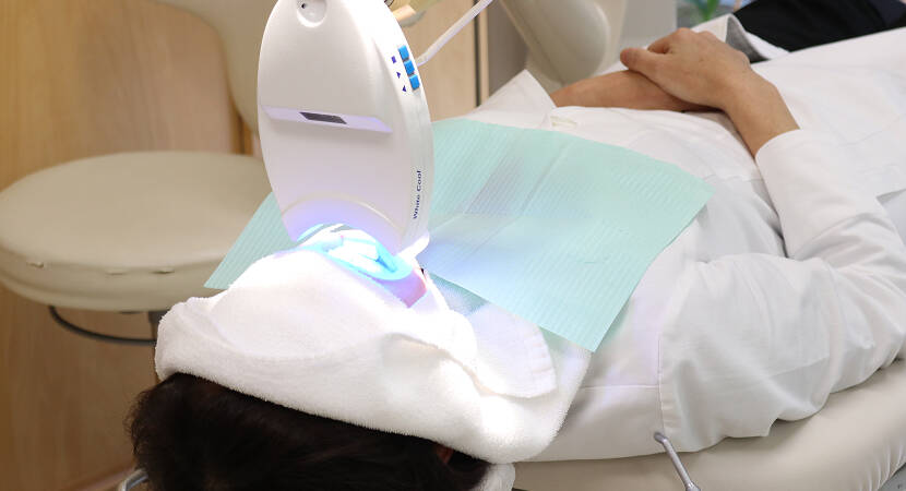 歯科医院で行うホワイトニングで、専用の薬剤を歯に塗布し、特殊な光を当てて歯を白くします。