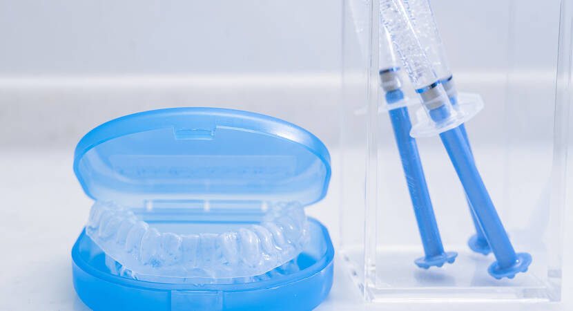 歯科医院で作成した専用のマウスピースにホワイトニングジェルを入れ、自宅で一定時間装着します。