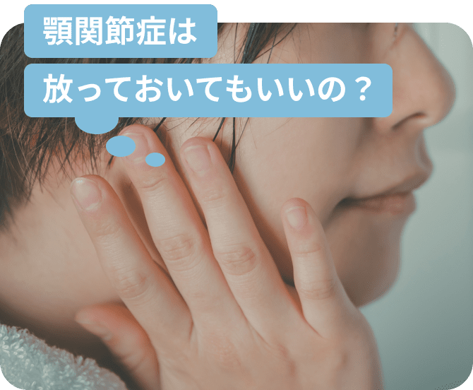 また、局部の炎症が全身に広がる恐れがあります。顎のずれや噛み合わせの悪化が、顔や全身の骨格の歪みにつながることもあります。